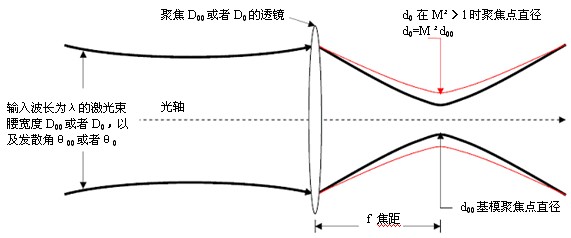 为了测量光束质量因子M2,将一个已知焦距的透镜放在固定位置上,光束通过它聚焦进行一次高斯变换,束腰和发散角发生变化,用照相机可对该光束的传播特性进行测量。